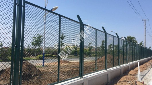 保稅區圍欄網孔菱形狀,堅固美觀,不容易變形。防攀爬性好。表面采用浸塑處理,防銹時間長,鋼板網圍墻通風性能好,安裝方便。